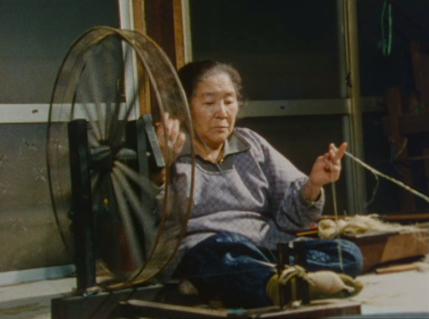 冬は雪に閉ざされる山間の村でからむしと麻を育て、繊維をとりだし糸を績み反物に織り上げるまでの工程を丁寧にたどる、約40年前の作品です。